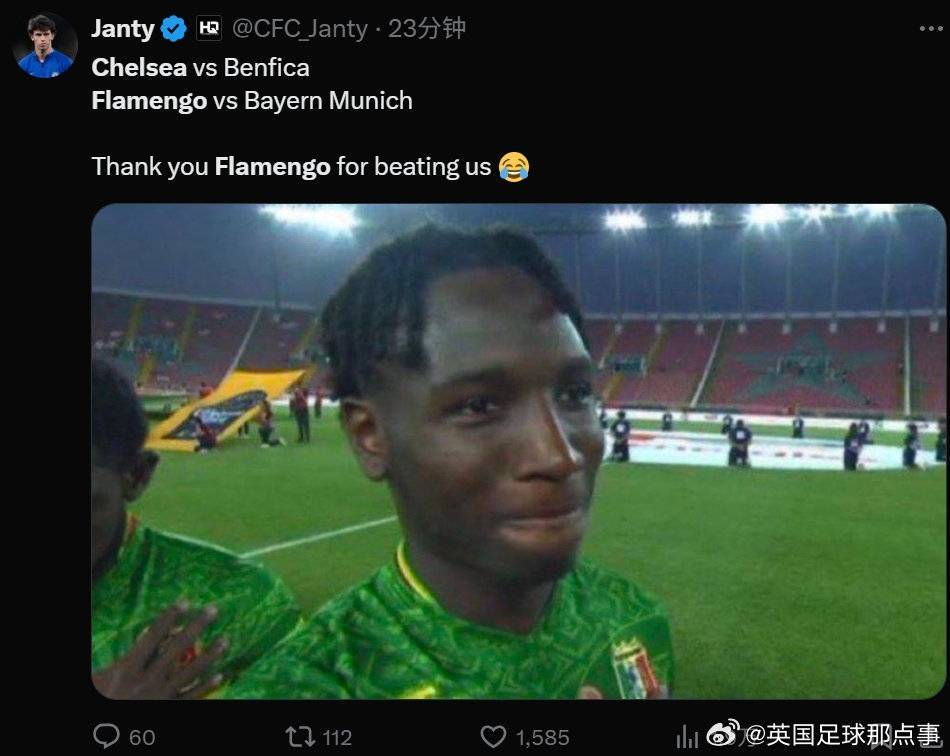 X上切尔西球迷都在感谢弗拉门戈在小组赛战胜了切尔西,甚至跑到了弗拉门戈官推下感谢。